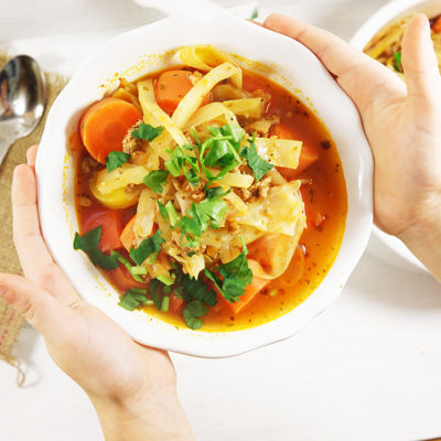 Eine herzhafte Krautsuppe ist eine von vielen Möglichkeiten, dieses wunderbare Wintergemüse in einem schlanken und rasch zubereiteten Paleo-Gericht schmackhaft zu verarbeiten.