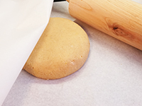4. Den Teig zwischen 2 Backpapierfolien legen und mit einem Nudelholz vorsichtig ausrollen.
